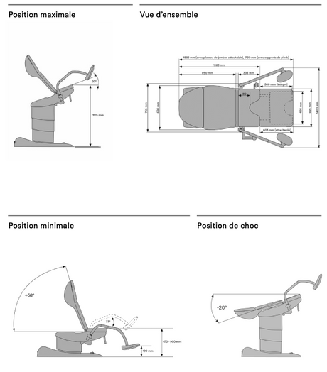 - Chaque fauteuil se distingue par sa stabilité, sa précision de position, la qualité de son revêtement et l’intégration fluide de ses supports et accessoires.