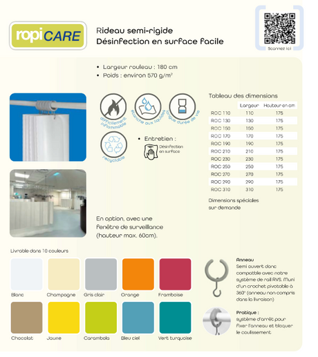Rideau médical RopiCare® semi rigide & pliable ROPIMEX- avec fenêtre translucide