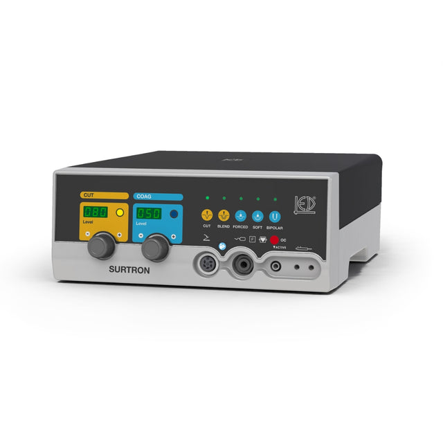 | Description | Compact et polyvalent, le bistouri électrique SURTRON 80 offre une puissance de 80 W adaptée aux interventions chirurgicales légères et aux soins ambulatoires. Il garantit une coupe précise et une coagulation efficace, tout en conservant un excellent contrôle de la sécurité et du courant délivré. | Le SURTRON 120 combine performance et précision avec une puissance de 120 W, idéale pour la majorité des actes chirurgicaux courants. Sa stabilité de coupe et la qualité de sa coagulation en font un outil fiable pour les praticiens recherchant un équilibre entre puissance et polyvalence. | Conçu pour les interventions exigeantes, le SURTRON 160 délivre jusqu’à 160 W de puissance pour une efficacité optimale en coupe et en coagulation. Il assure des performances élevées et une parfaite maîtrise de l’énergie, même sur les tissus les plus résistants. |