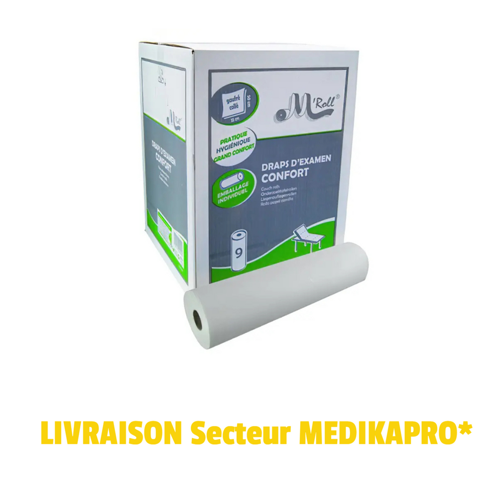 Draps d'examen Confort - 2 plis- Gaufrés - 50x35 - 135 formats - Carton de 9 rouleaux est en rupture de stock et sera expédié dès qu’il sera de retour en stock.