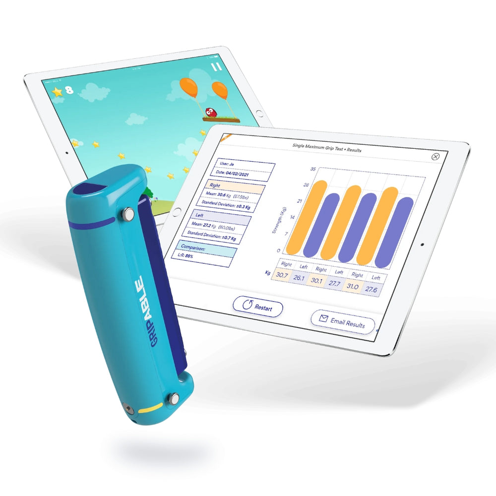 Le Gripable PRO est un dispositif révolutionnaire pour la prise en charge rééducative du membre supérieur. Il combine à la fois une fonction d’évaluation précise et une plateforme d’entraînement ludique. Intuitif à utiliser, il se connecte à une tablette via une application dédiée, permettant au praticien de créer des profils patients, de fixer des objectifs (répétitions, durée, mouvement ciblé) et de suivre l’évolution en temps réel.