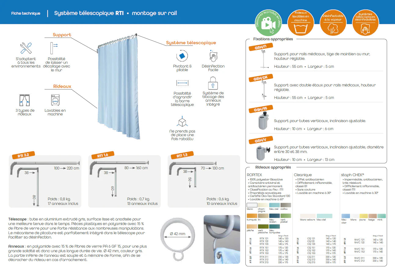 Le système télescopique RTI est conçu pour offrir une solution fiable, ergonomique et hygiénique de séparation dans les environnements médicaux et paramédicaux. Grâce à son bras pivotant et pliable, il permet de créer instantanément un espace de confidentialité dans un hôpital, une clinique, un cabinet, un EHPAD ou en soins à domicile, puis de se replier discrètement contre le mur lorsque le rideau n’est pas utilisé.