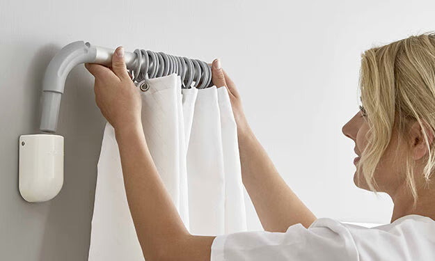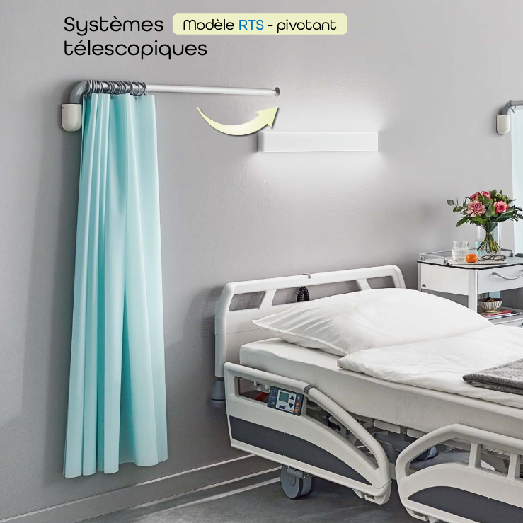 Système télescopique RTS – barre pivotante pour rideaux de séparation médicaux
