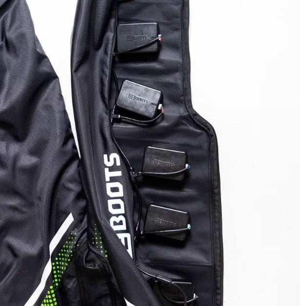 Équipé de 16 chambres à air superposées, le pantalon de pressothérapie Reboots Go X assure un massage progressif, allant des pieds vers le haut du corps, pour une récupération optimisée ciblant précisément vos zones sensibles ou sursollicitées.