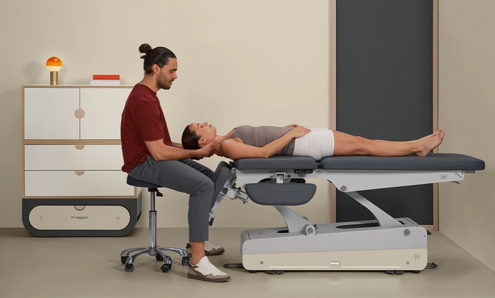 Section centrale avec moteur. Boutons placés aux latéraux de la table