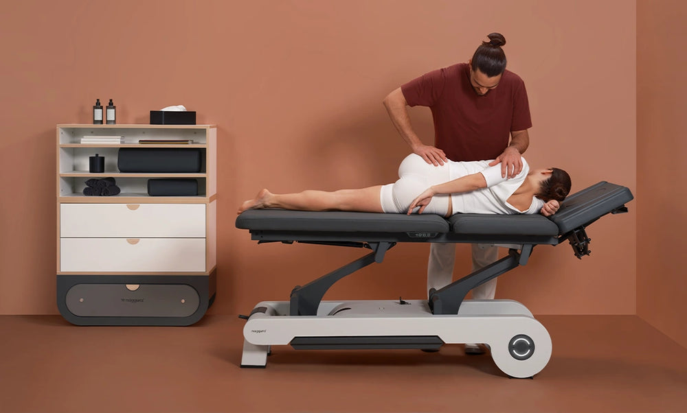 Section centrale avec moteur. Boutons placés au latéral de la table