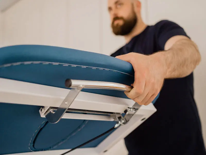 Le réglage en hauteur varie d'un minimum de 50 cm, parfait pour un patient en fauteuil roulant, jusqu'à 92 cm. Cela permet à l'opérateur de trouver la position la plus confortable quel que soit le traitement effectué.