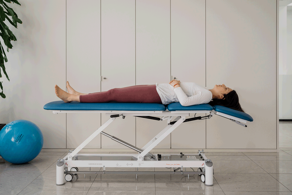 La tête particulière offre un confort maximal au patient en s'adaptant à l'ergonomie du corps. Le physiothérapeute peut régler le dossier pour que le patient soit confortablement installé, lors d'un traitement des membres inférieurs, ou en abaissant simplement la double tête lors d'un traitement des cervicales. La polyvalence est le mot qui distingue Picasso SUITE.