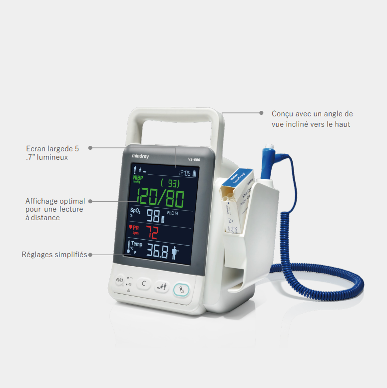 Moniteur de constantes Mindray VS600 : PNI, SpO2 Mindray (accessoires non livrés de base)