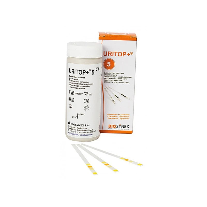 Ces bandelettes urinaires Uritop sont des bandelettes en plastique rigides sur lesquelles sont fixées plusieurs zones réactives. Elles sont destinées à réaliser des détections qualitatives et semi-quantitatives dans les urines humaines de 7 ou 11 paramètres, pour déceler, entre-autre choses, des infections urinaires.